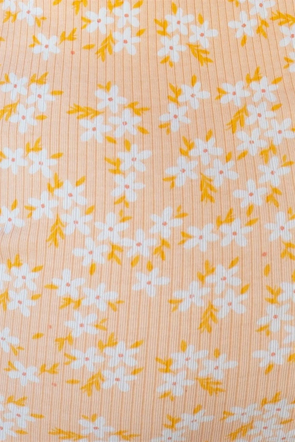 The body hugging Adiana Dress is made from a natural ribbed cotton fabric in an orange hue with our exclusive floral print throughout. It is a cami style featuring thin straps and draw detailing at sides. Adjusted at sides to wear as a midi or mini! Exclusively designed by Sabo.