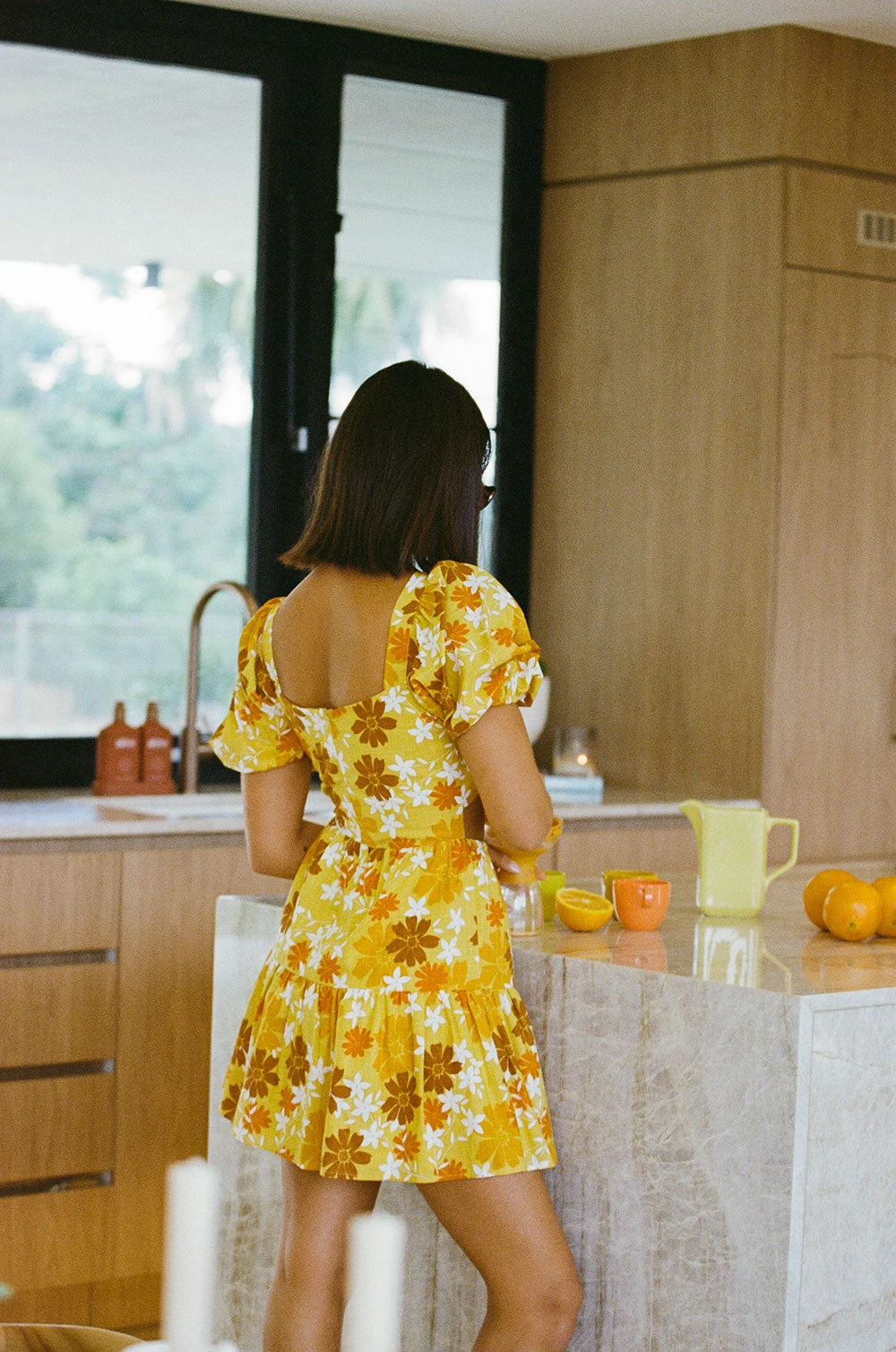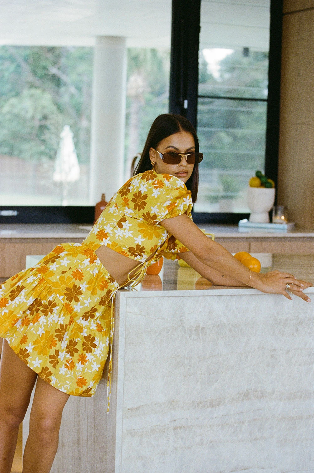 Inspired by summer sunsets abroad, the Aquaria Dress is made from a natural cotton voile fabric with our exclusive summer haze print. It features short puff sleeves, keyhole cutout and strappy tie detailing at centre bust, cutout at waist and a flouncy skirt. A vacation wardrobe must-have! Designed exclusively by Sabo.