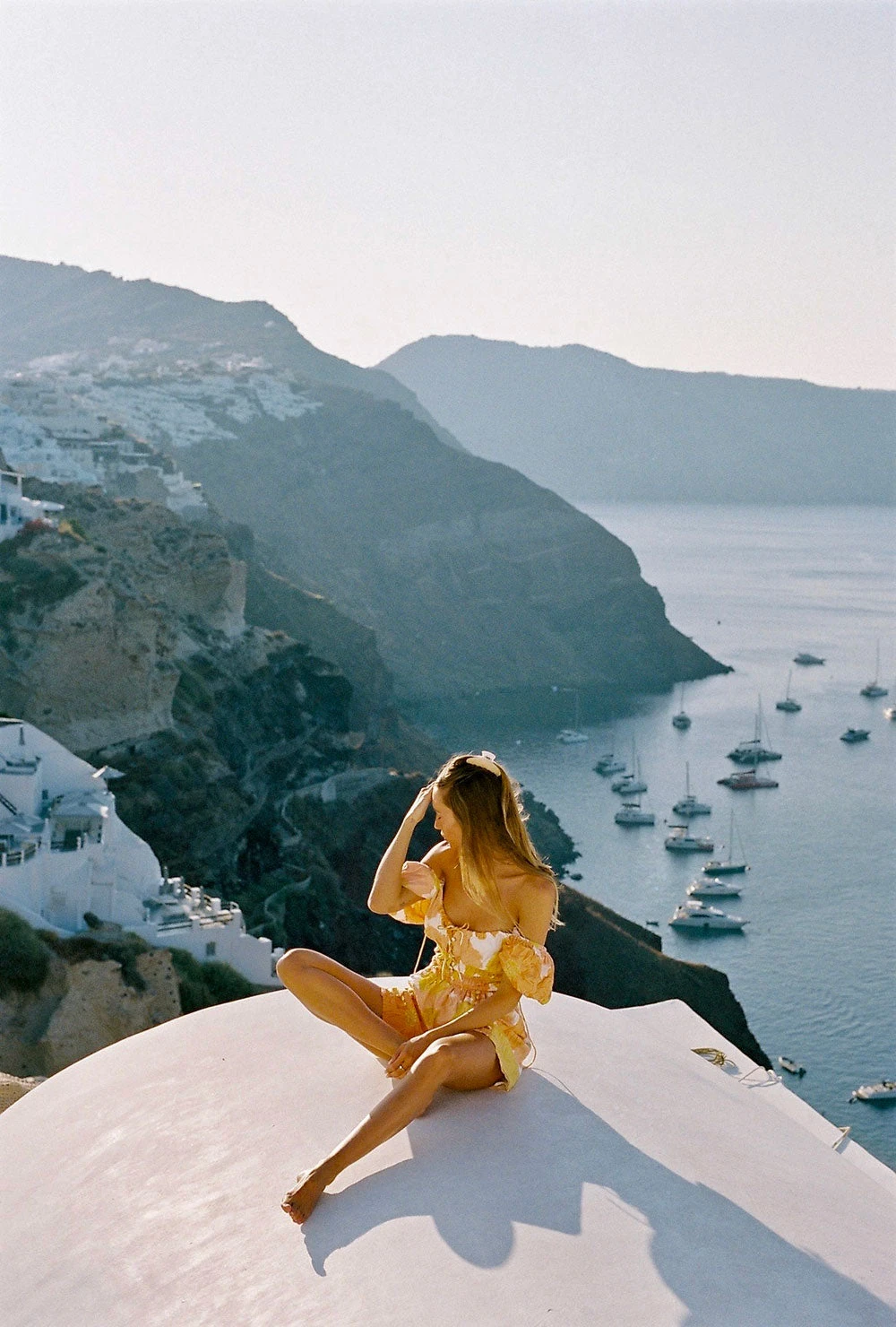 Inspired by vacation sunsets, the Kensington Backless Dress is made from a high quality viscose linen blend fabric with our exclusive poppy print. It features an open back with tie closures, short puff sleeves, covered button details at front, shirred panels at waist and a flouncy skirt. Dress it up with the Strappy Rafaela Heels! Designed exclusively by Sabo.