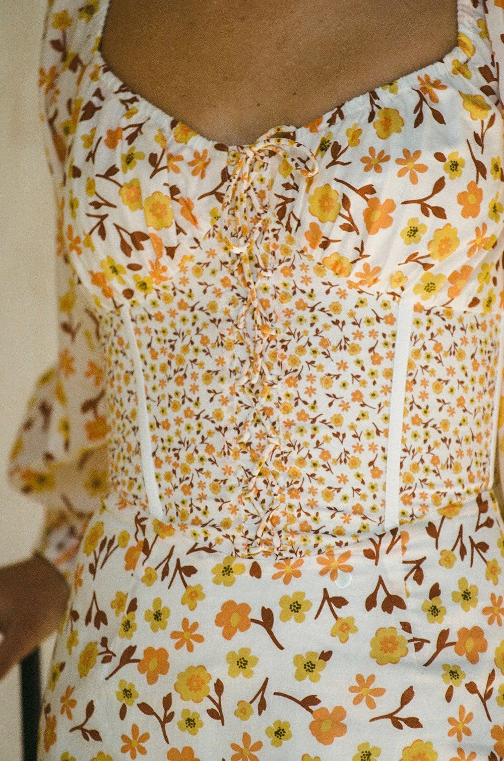 Dripping with details! The Kenzie Dress is made from a high quality natural cotton voile fabric with our exclusive vintage floral print. It features full length puff sleeves, elastic neckline, frill details under bust and waist, lace up at centre front, fitted boned corset waist and fitted skirt. Pair with the Strappy Rafaela Heels and Riella Bag for your next event! Designed exclusively by Sabo.
